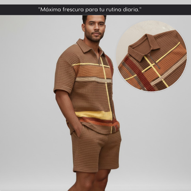 Este conjunto ha sido fabricado con un tejido técnico micro-perforado que permite una transpiración constante, manteniendo tu cuerpo fresco incluso en los días más calurosos.