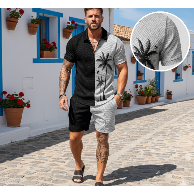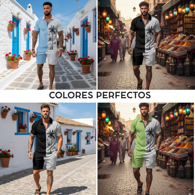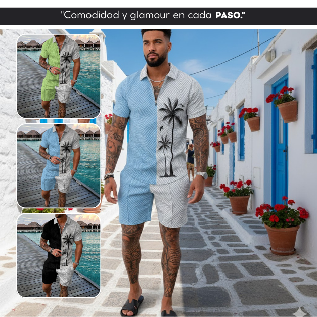 El estilo de este Conjunto encapsula la moda de ocio con un toque de sofisticación playera.