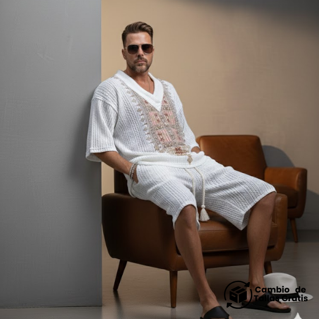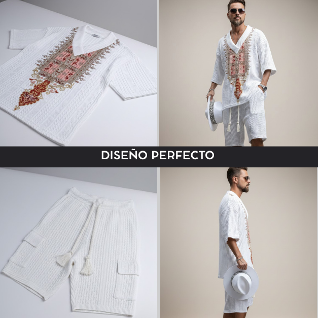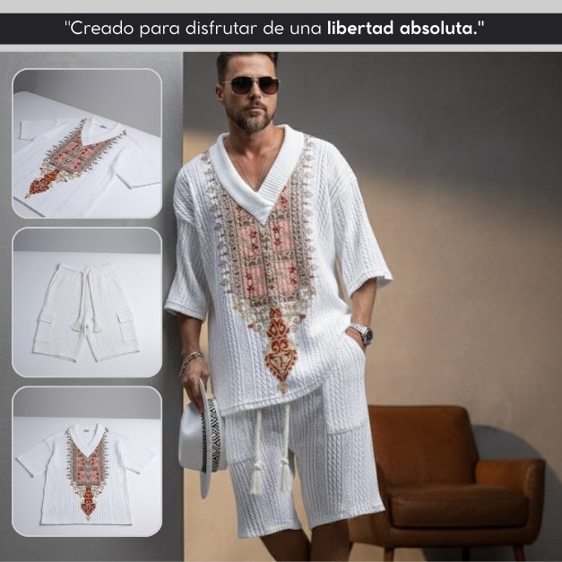 El corte holgado de la túnica y la flexibilidad de las bermudas permiten una movilidad total, siguiendo el ritmo natural de tu andar.