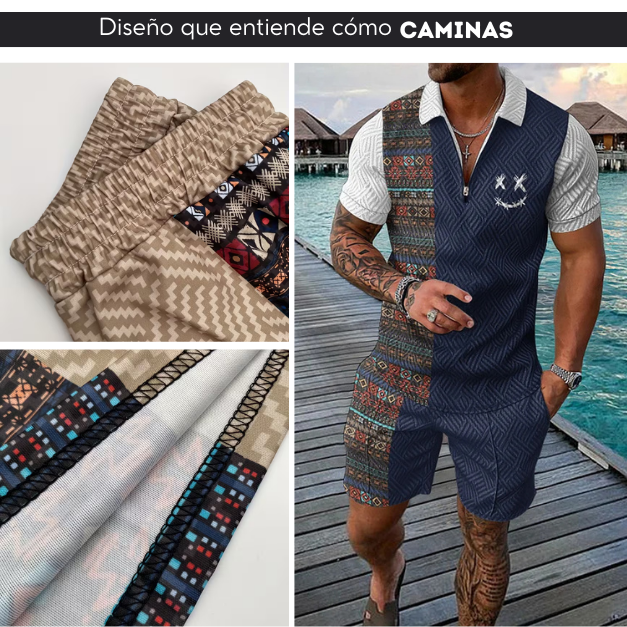 El estilo de este Conjunto fusiona lo étnico y lo streetwear de manera magistral, creando una estética bohemia-urbana.
