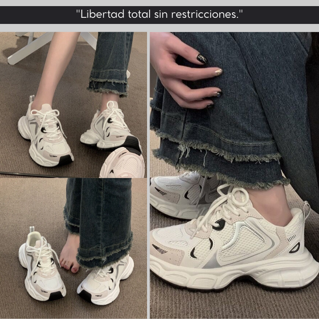 Perfectas para looks urbanos o deportivos, estas zapatillas elevan jeans, shorts o faldas largas con un aire fresco y actual.